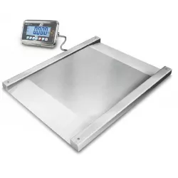 - Bascule surbaissée robuste en acier inoxydable pour un pesage rapide de p. ex. chariots de linge, chariots à container, chariots roulants etc. Idéal pour la blanchisserie hospitalière, l'entrée des marchandises, la cuisine hospitalière etc.