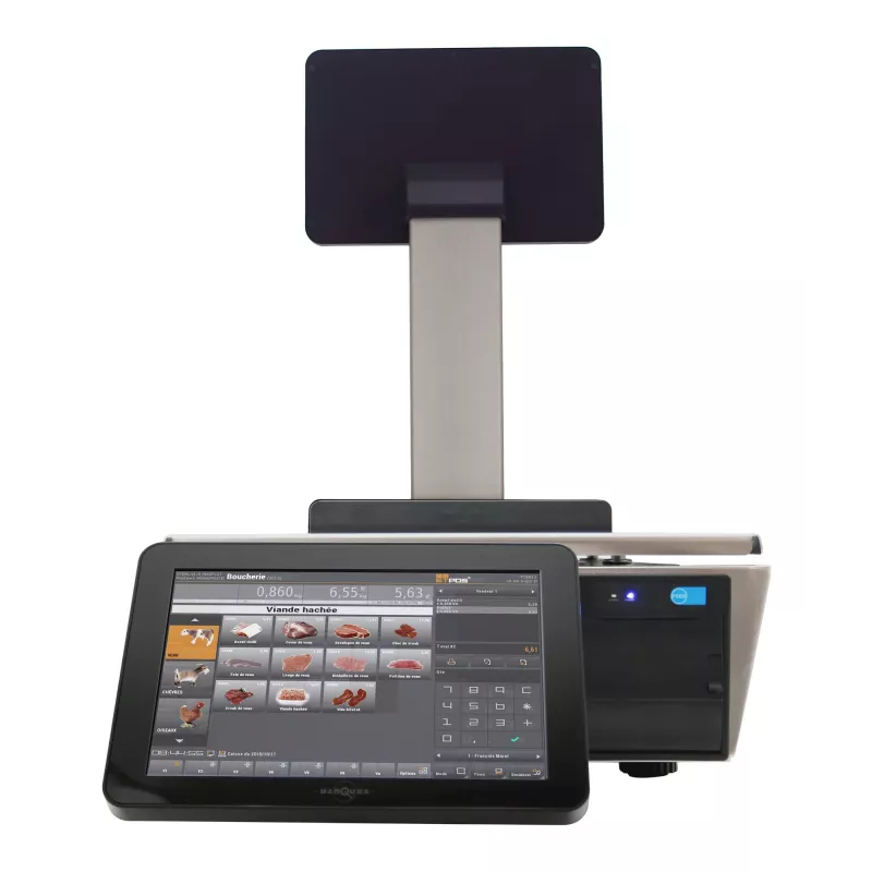 Dotée d'un écran utilisateur sur le corps de la balance et d'un deuxième écran surélevé pour le client, elle dispose également d'une imprimante intégrée (58 mm ou 80 mm), assurant de multiples fonctions dans un seul appareil.